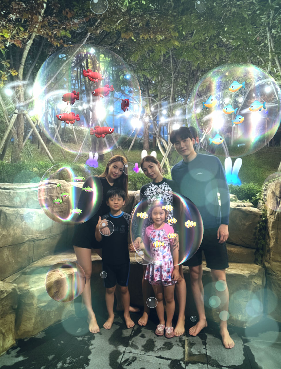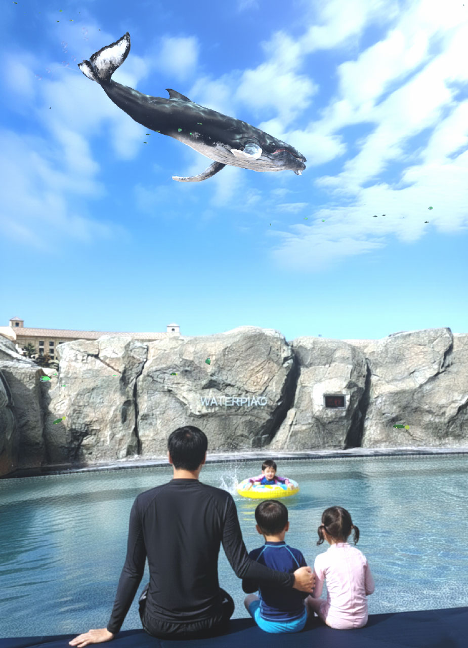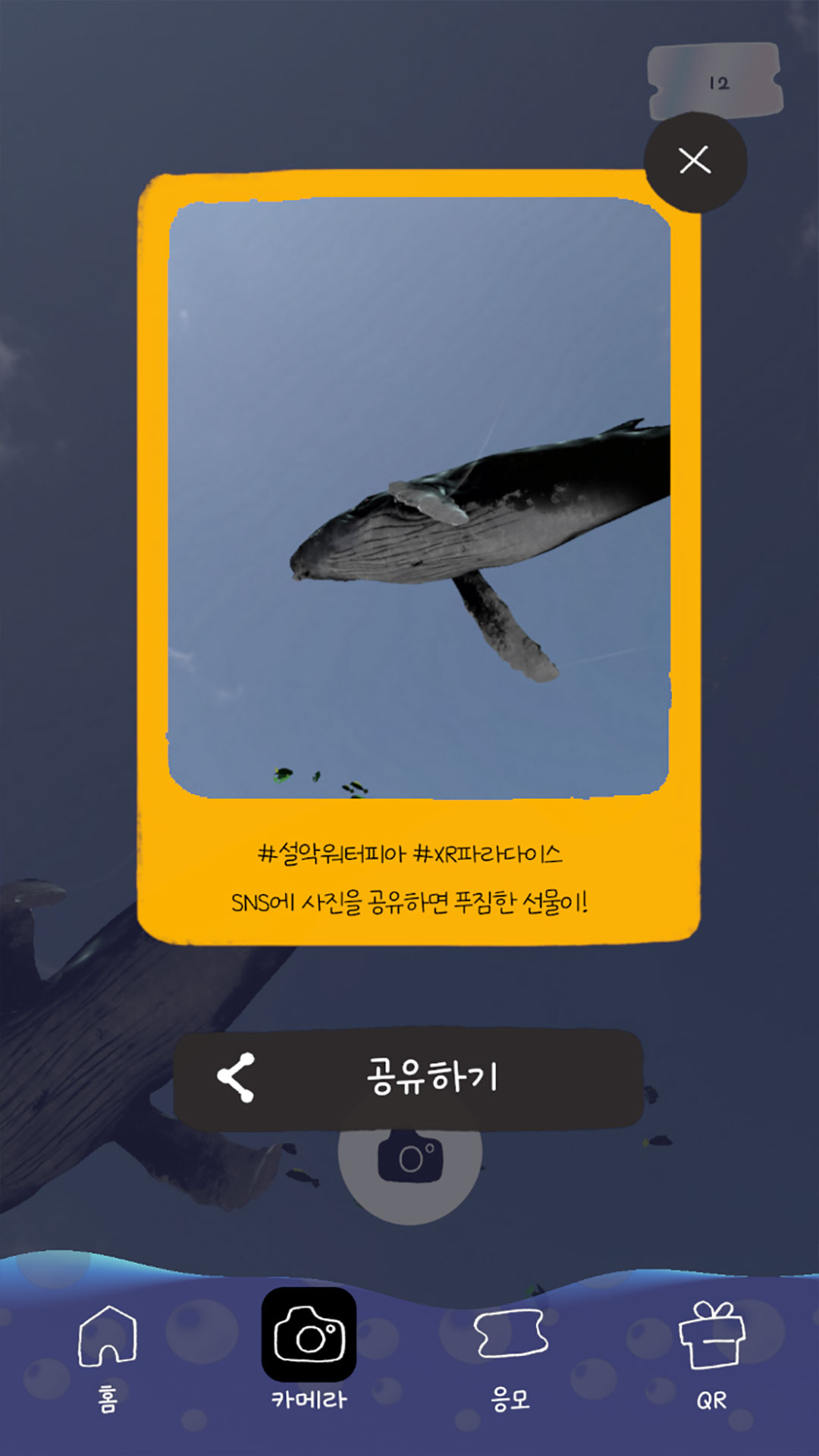 사용자는 자신의 모바일 기기로 설악 워터피아의 아름다운 풍경을 촬영합니다. 이때 저희가 개발한 AR 기술이 작동하여, 사용자의 실제 사진 배경 위에 거대한 고래의 유영, 화려한 불꽃놀이, 신비로운 물방울 이펙트 등 다채로운 AR 오브젝트를 실시간으로 렌더링합니다. 이는 한화리조트와의 공동 'AR 포토 이벤트'로 연계되어, 방문객들이 자발적으로 콘텐츠를 생성하고 공유하게 함으로써 바이럴 마케팅 효과와 함께 높은 고객 만족도 및 참여율을 달성했습니다.